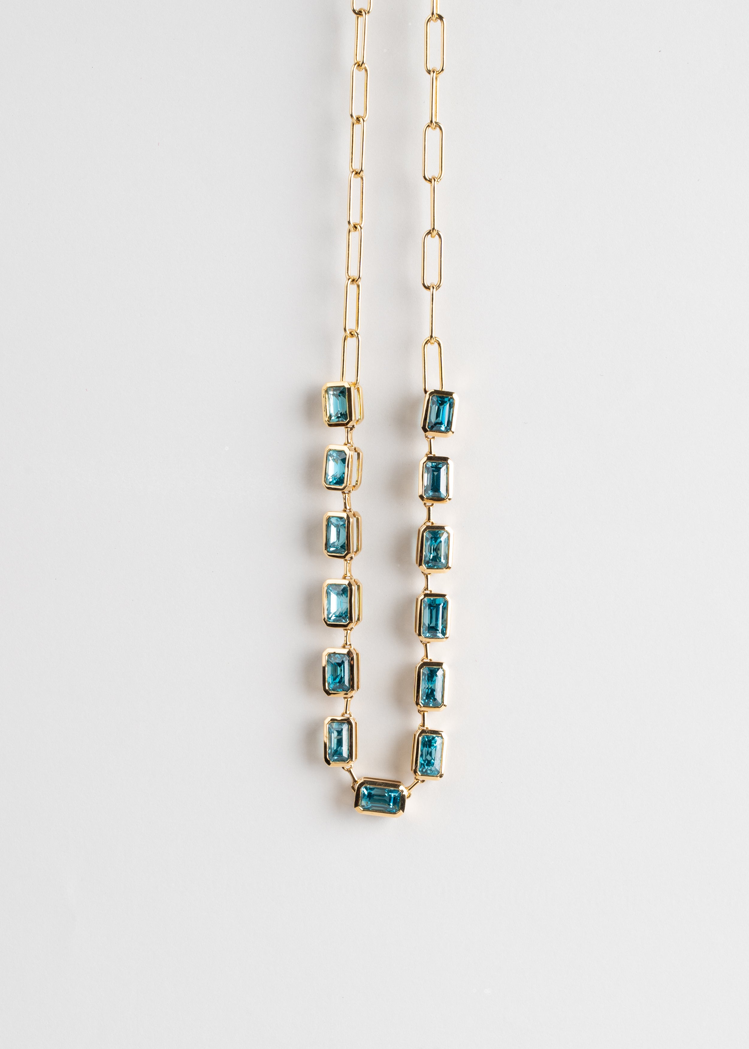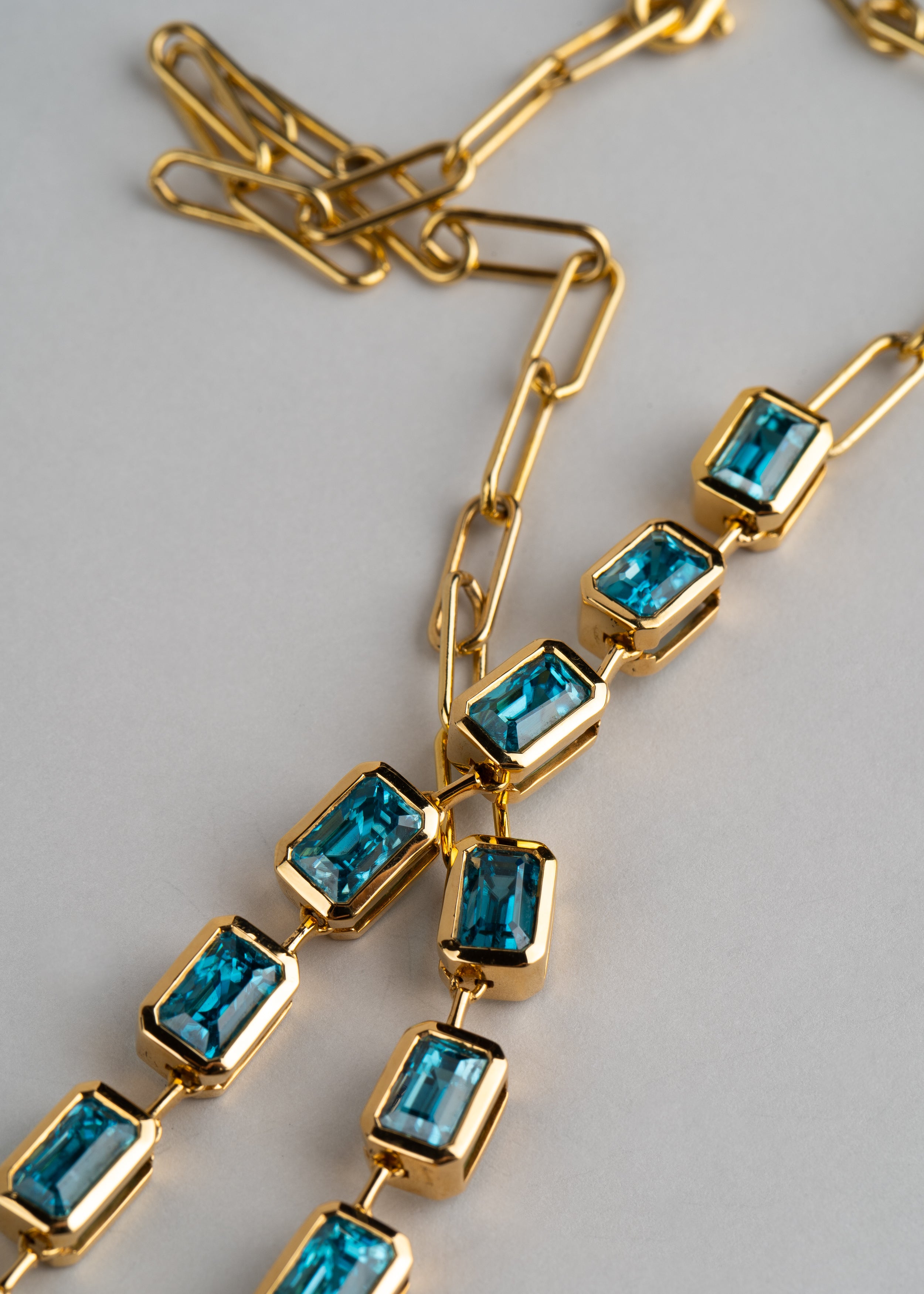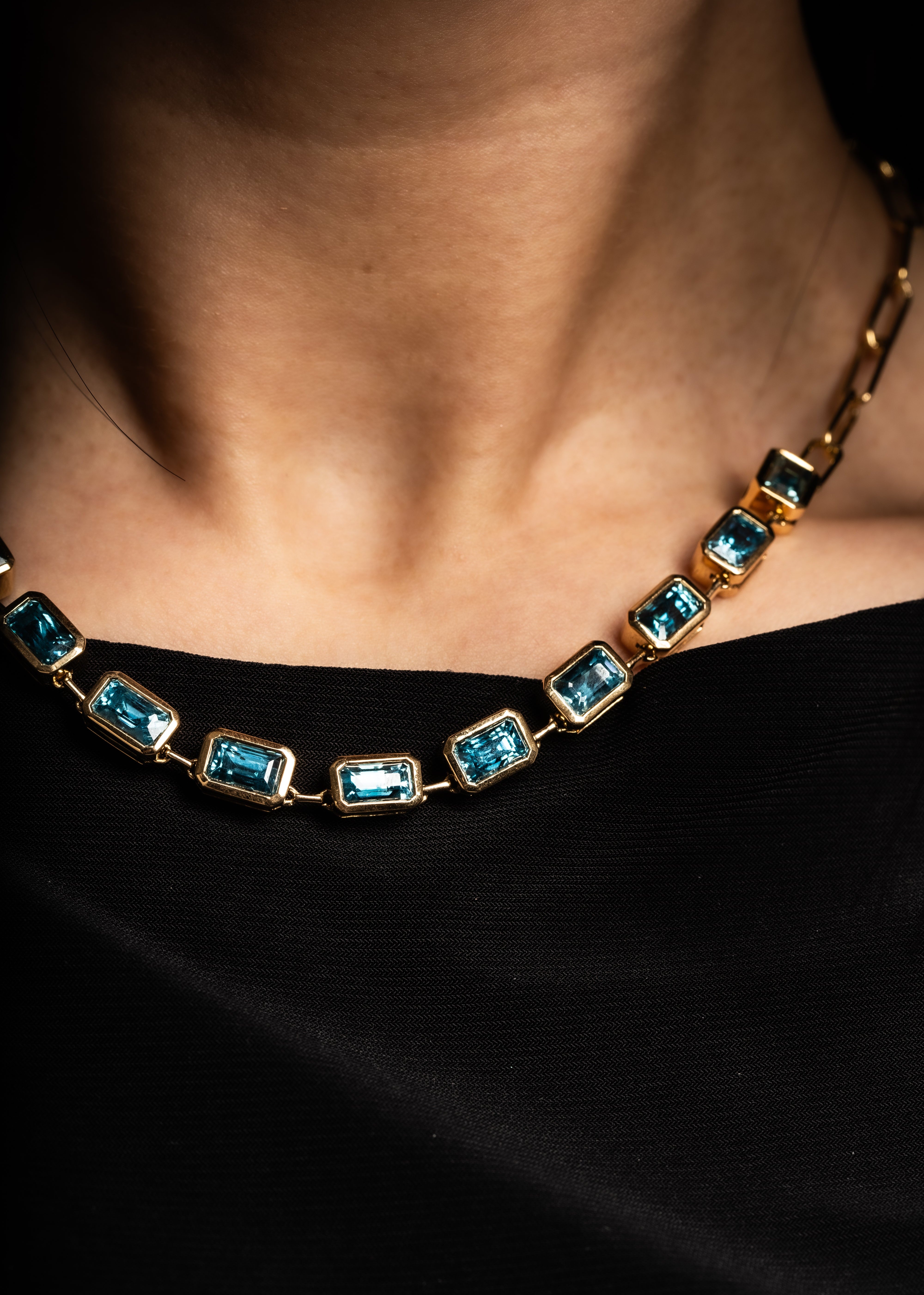 A One-Of-One Necklace, a tribute to Cambodia, where the natural Blue Zircons are from.