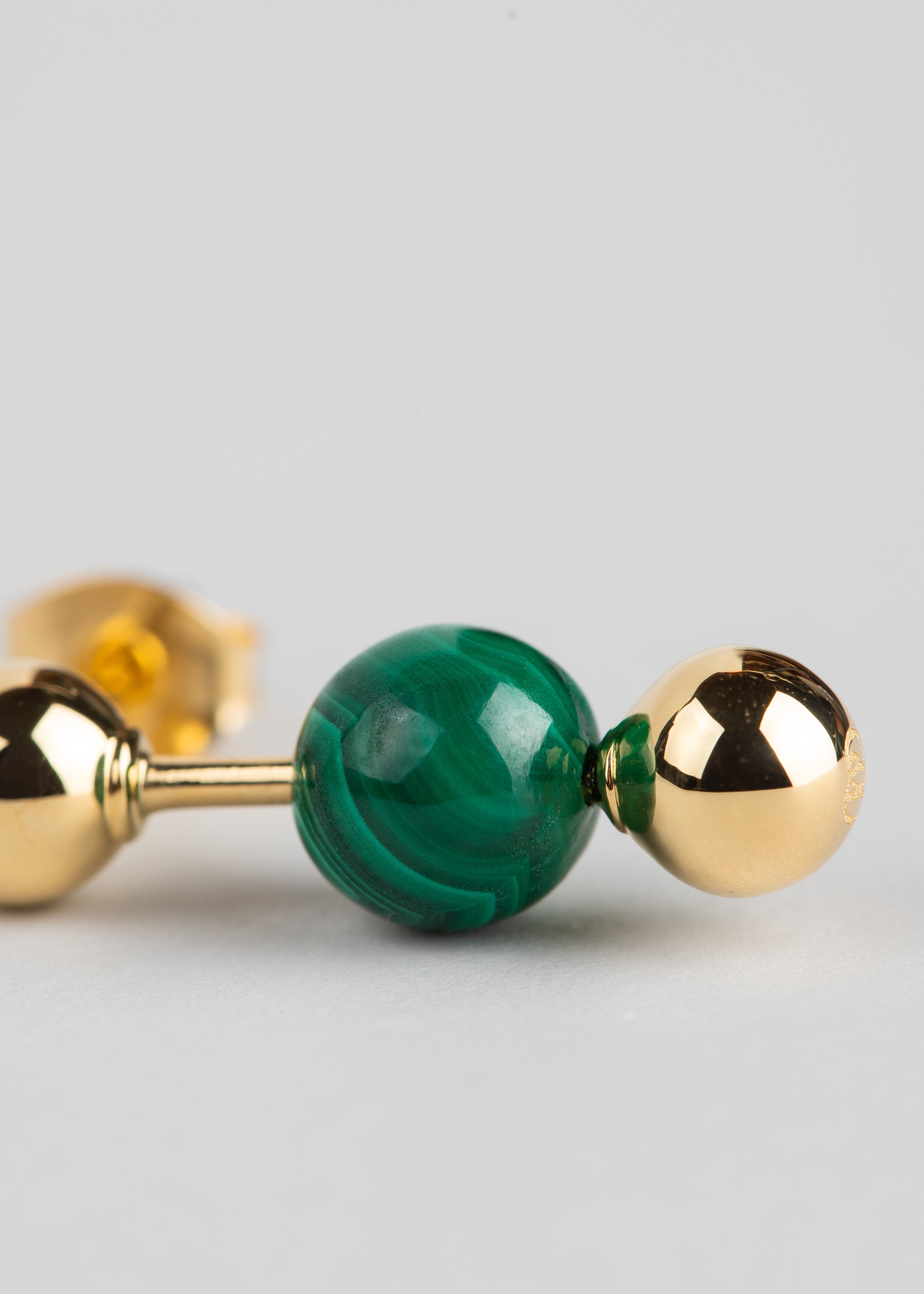 Movable middle spheres made of natural custom-carved malachite - total for pair: 4.16 carats