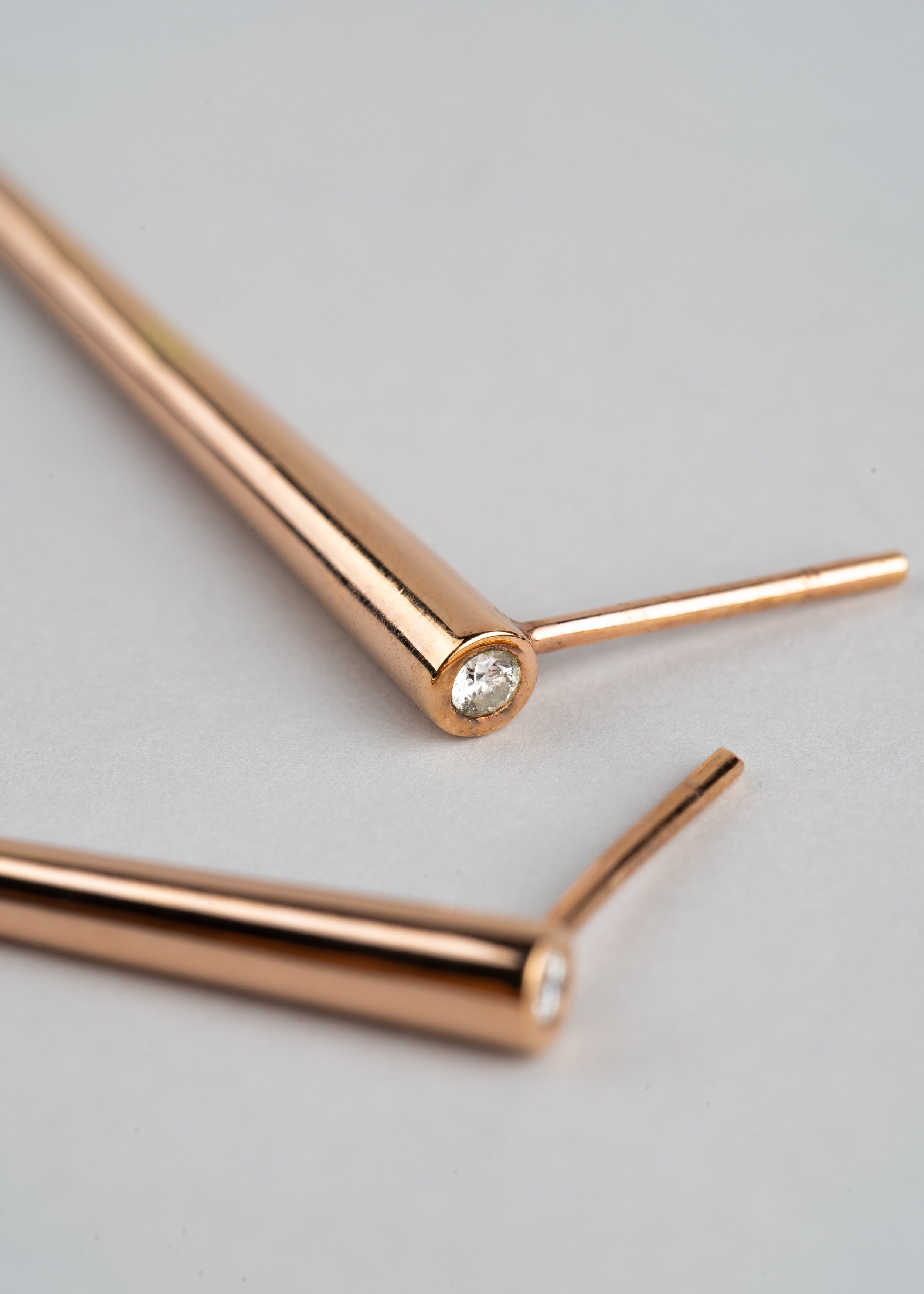 Construct with 18 Karat Gold with 2 diamonds at the top.