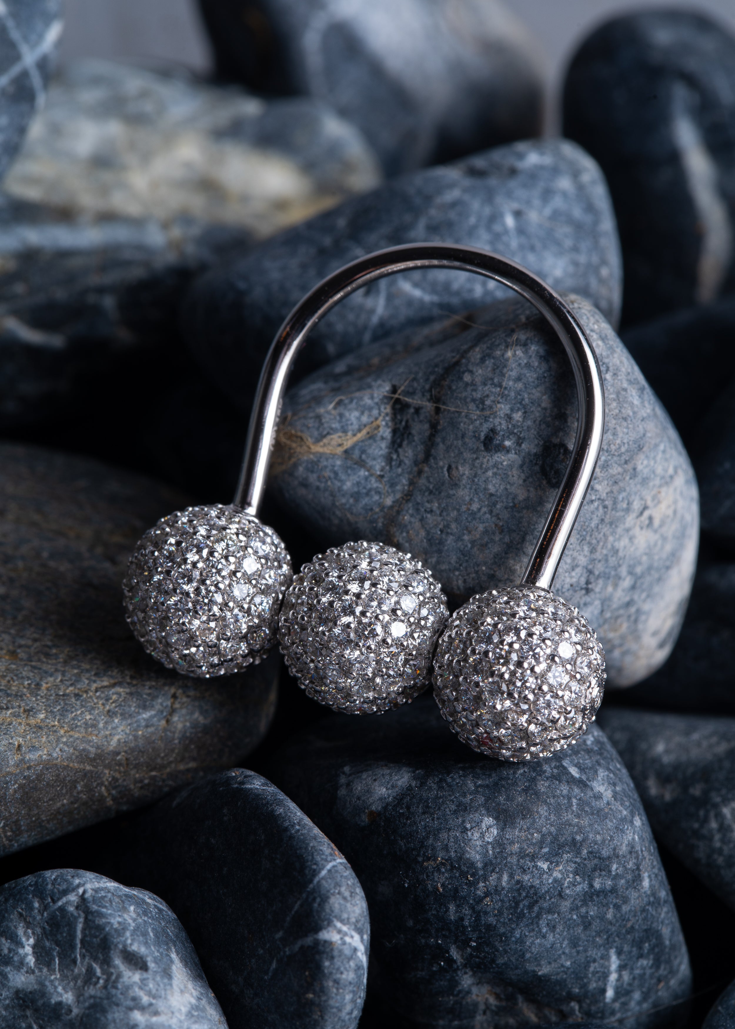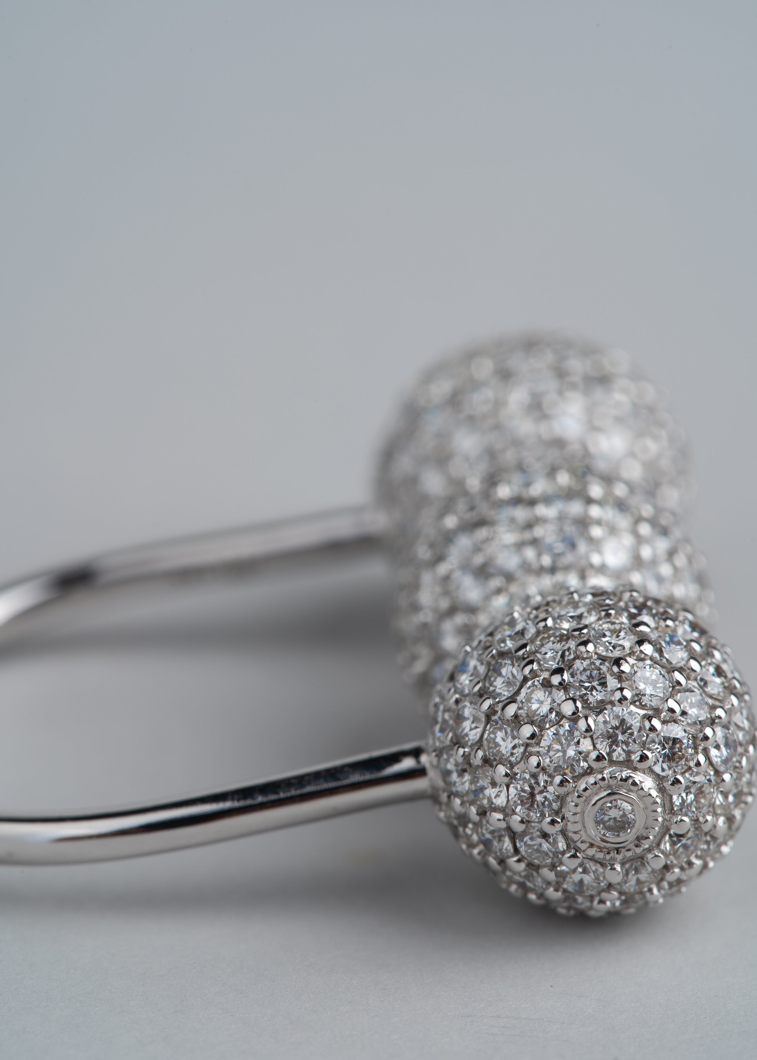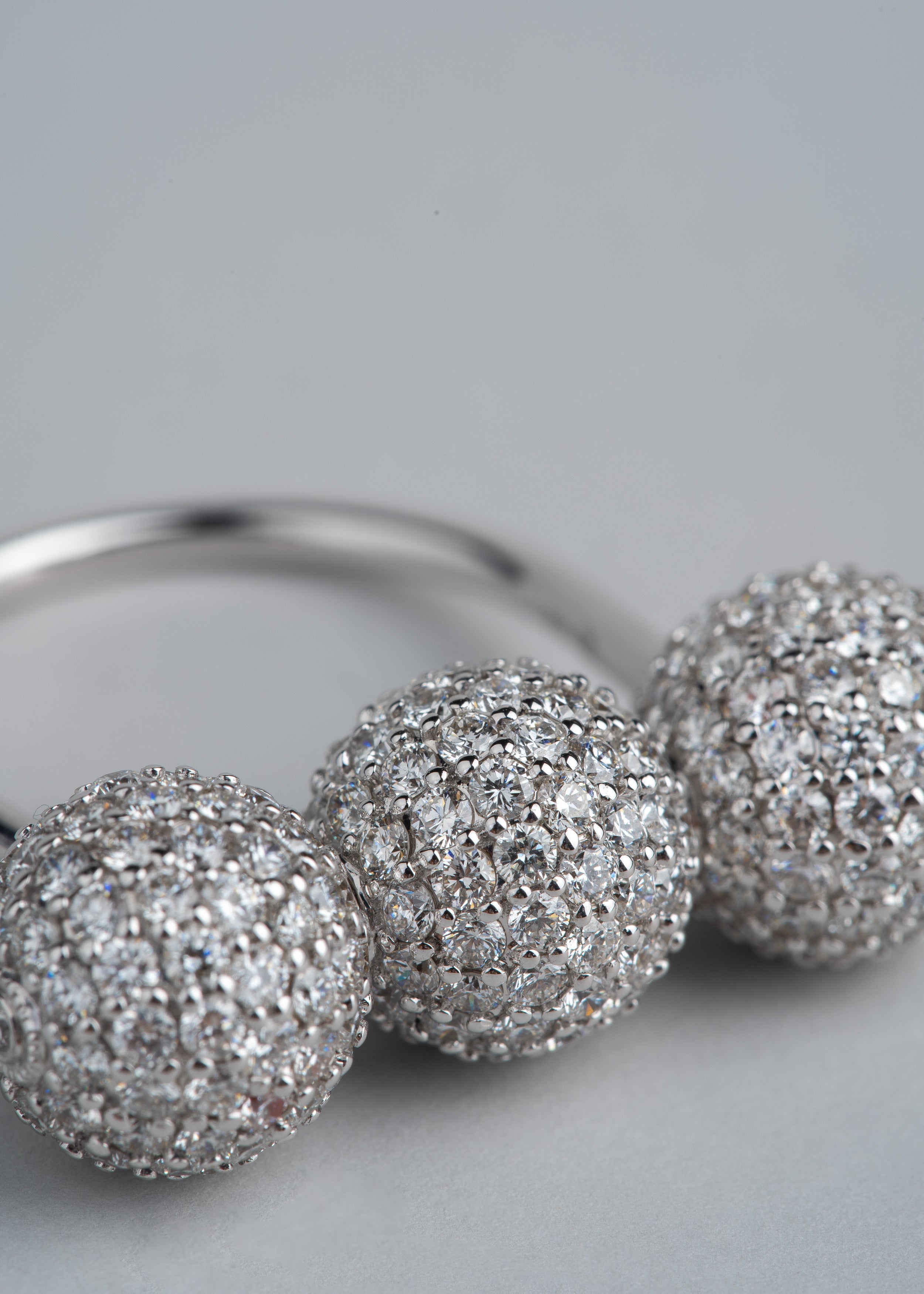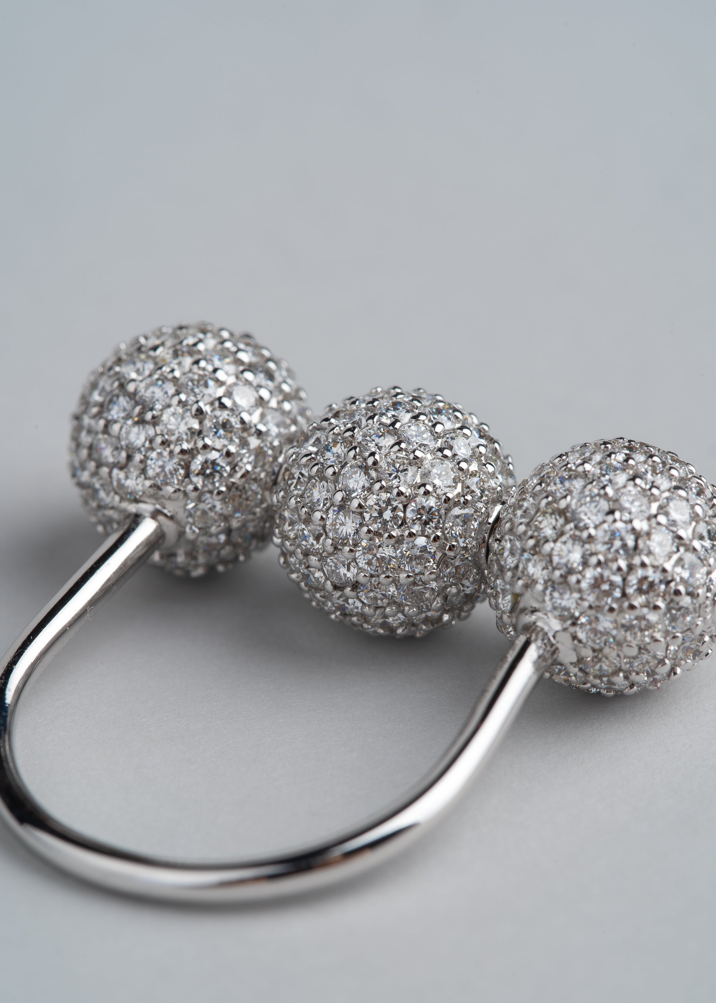 A new addition to our signature Abacus ring, XXL edition. The middle sphere is movable on its axis. All Around natural diamond pavé.